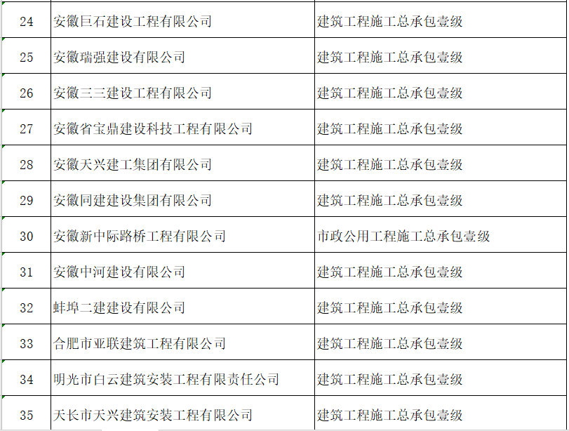 核准建筑业企业资质的单位名单: