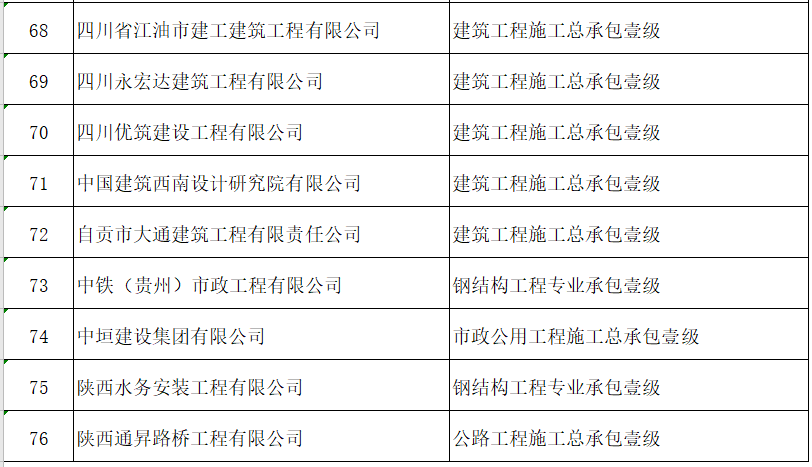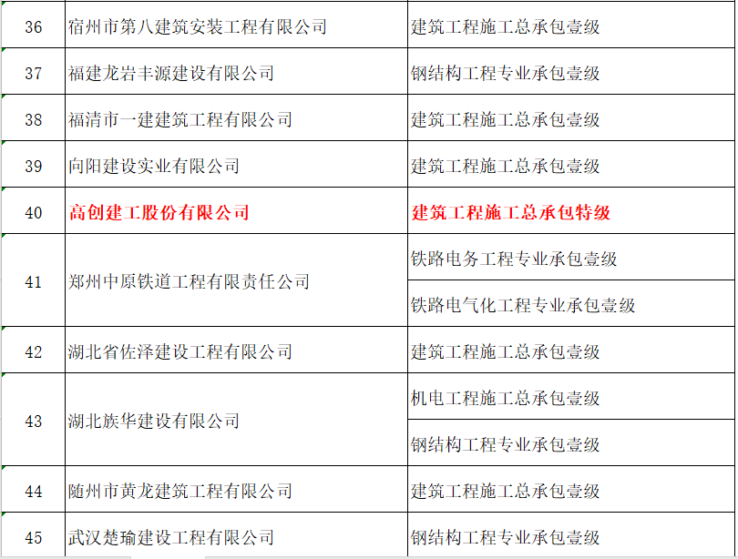 四家建企新增施工总承包特级资质: