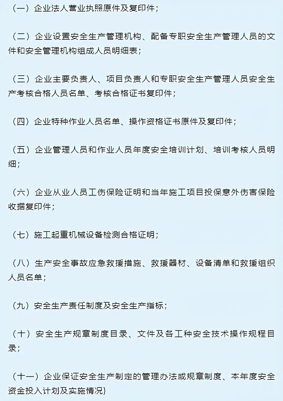 a、第一步向当地安检站申报。需申报资料有安全三类人员和十三项。(人员是需经过当地建筑安全部门培训过的考核通过的人员,由建设厅统一发证。十三项是提供企业基础资料的册子)(安全三类人是企业负责人A证,企业项目负责人B证,专职安全生产管理人员C证。三类人员三年延期一次,延期之前要继续教育,继续教育合格后会发继续教育证)