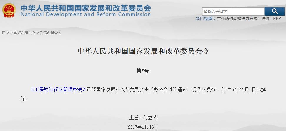 发改委令第9号《工程咨询行业管理办法》正式发布,2017年12月6日起施行!