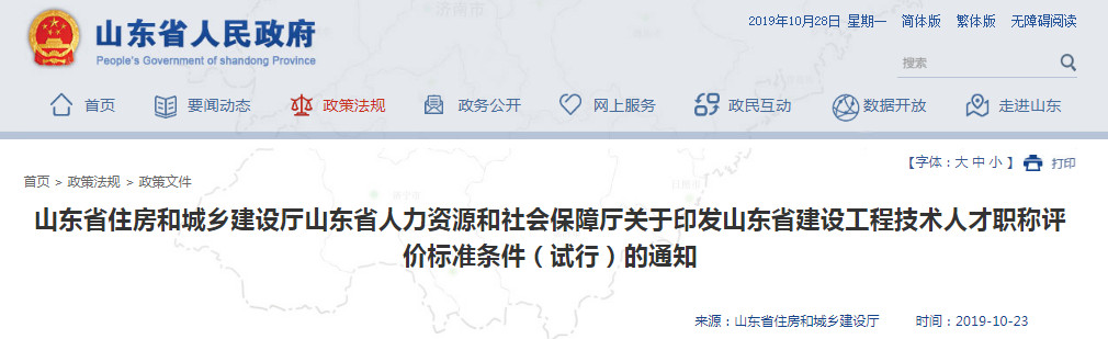 山东省住房和城乡建设厅、山东省人力资源和社会保障厅联合印发《山东省建设工程技术人才职称评价标准条件(试行)》,自印发之日起试行,有效期至2021年9月19日。