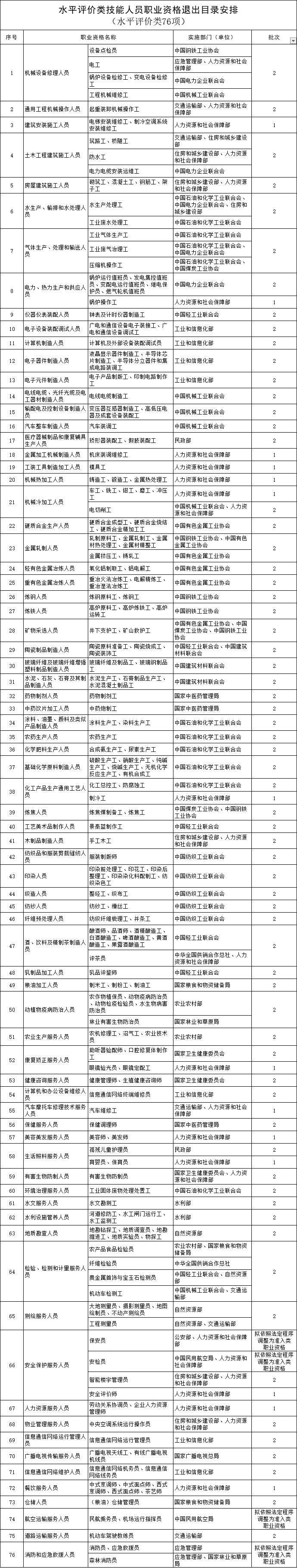 关于做好水平评价类技能人员职业资格退出目录有关工作的通知