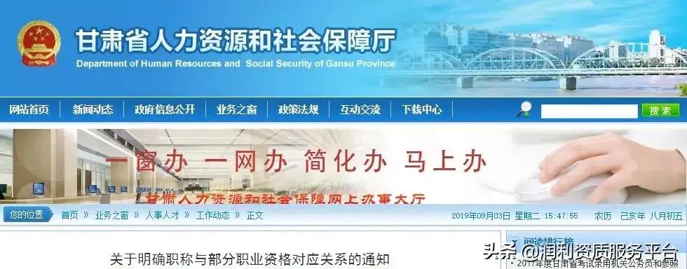 2017年12月,甘肃人社厅发布《关于明确职称与部分职业资格对应关系的通知》,明确28项职业资格与职称对应关系。(建造师未在对应表内)