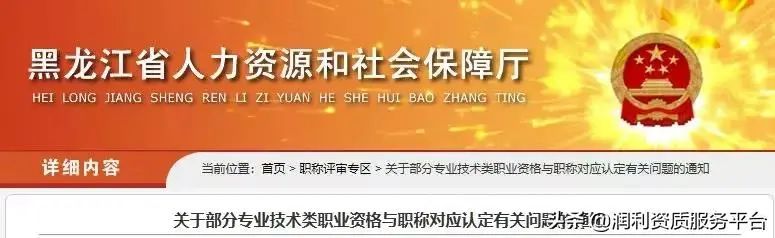 2018年12月,黑龙江省人社厅发布《关于部分专业技术类职业资格与职称对应认定有关问题的通知》,明确46项专业技术类职业资格与职称的对应关系。