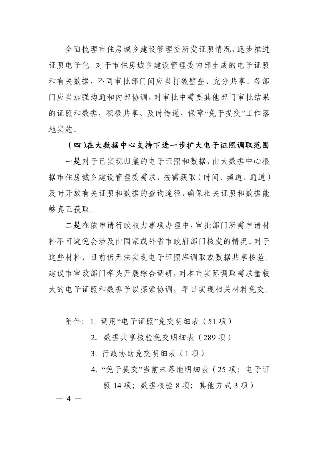 在本市政府部门核发且已纳入本市公共数据资源目录的材料,以及既往市住房城乡建设管理委已实现数据资源归集的基础上,采用数据共享核验方式实现材料免交(见附件2)。(三)运用行政协助