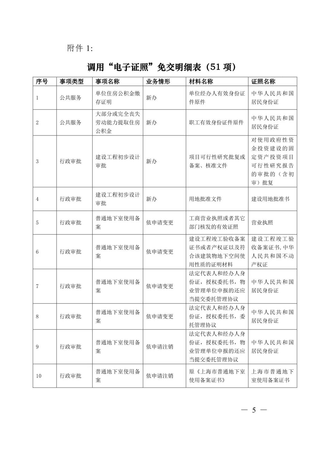 对属于政府部门核发且已经归集到电子证照库的申请材料(52项),采取调用电子证照方式,不再提交材料。