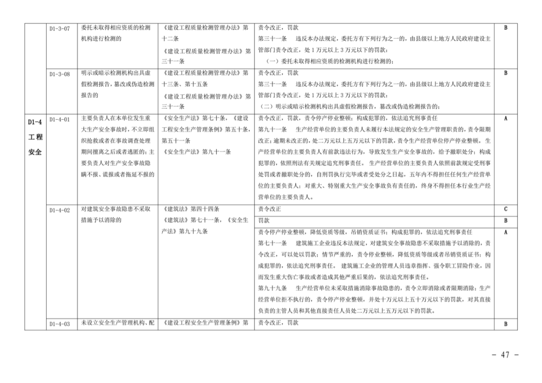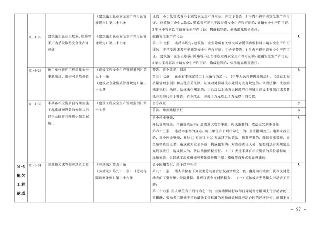 施工单位失信行文详细分级标准