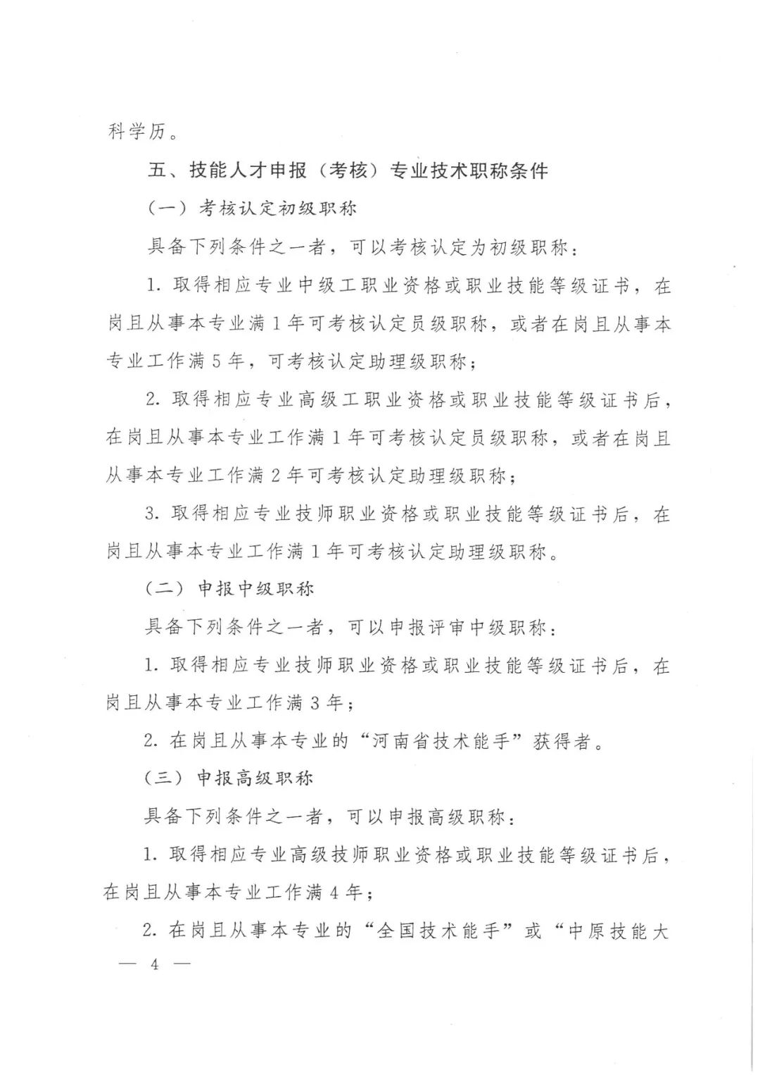 三是获得“全国技术能手”或“中原技能大奖”的高级技师,在岗且从事本专业工作满18年。