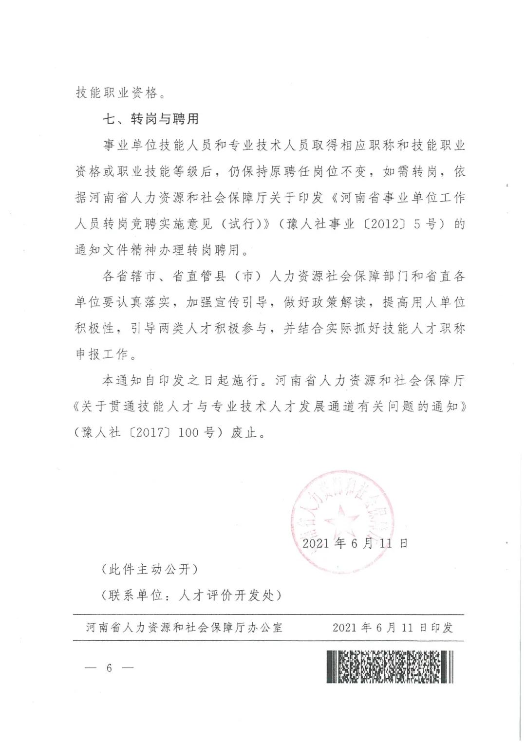 事业单位技能人员和专业技术人员取得相应职称和技能职业资格或职业技能等级后,仍保持原聘任岗位不变,如需转岗,依据河南省人力资源和社会保障厅关于印发《河南省事业单位工作人员转岗竞聘实施意见(试行)》的通知文件精神办理转岗聘用。