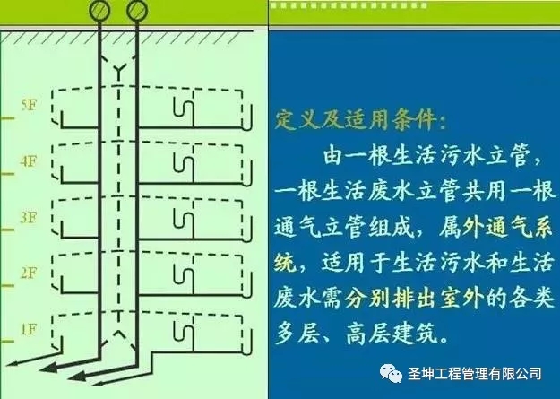 建筑内部污废水排水管道系统按排水立管和通气立管的设置情况分为