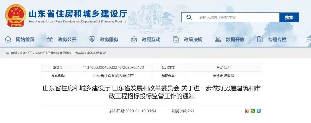 2020年1月,山东省住建厅、山东省发展改革委联合发布《关于进一步做好房屋建筑和市政工程招标投标监管工作的通知》。允许信用良好、具有专业技术能力、能够提供足额担保的总承包企业,参与资质类别内上一等级工程项目的投标