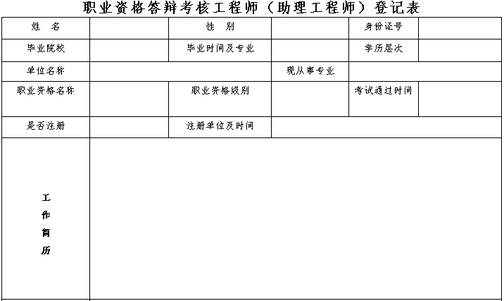 1. 职业资格答辩考核工程师(助理工程师)登记表