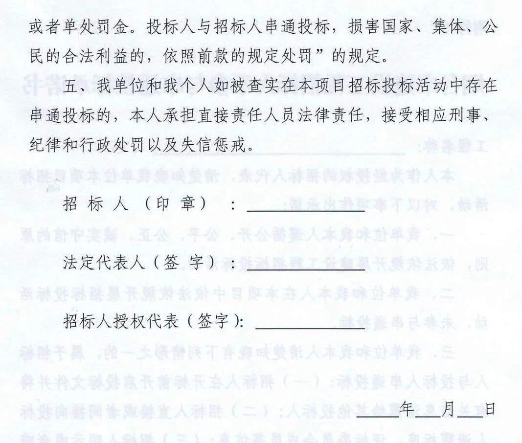 投标人如被查实存在围标串标的,签署承诺书的投标人代表将作为直接责任人员,一并被进行行政处罚和失信惩戒。