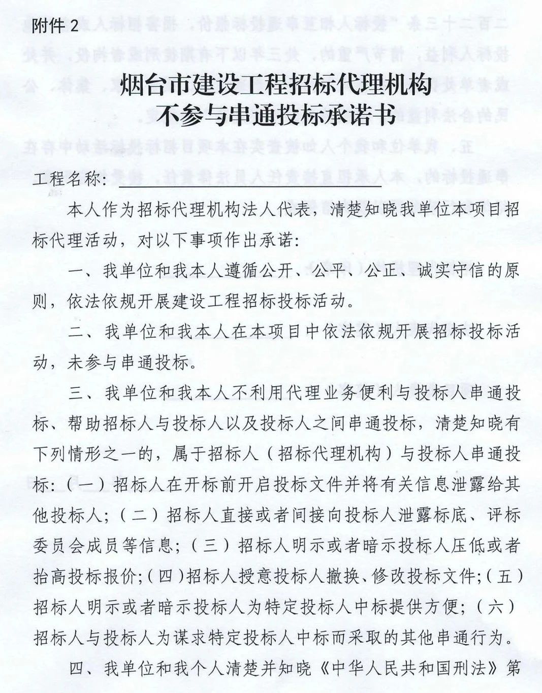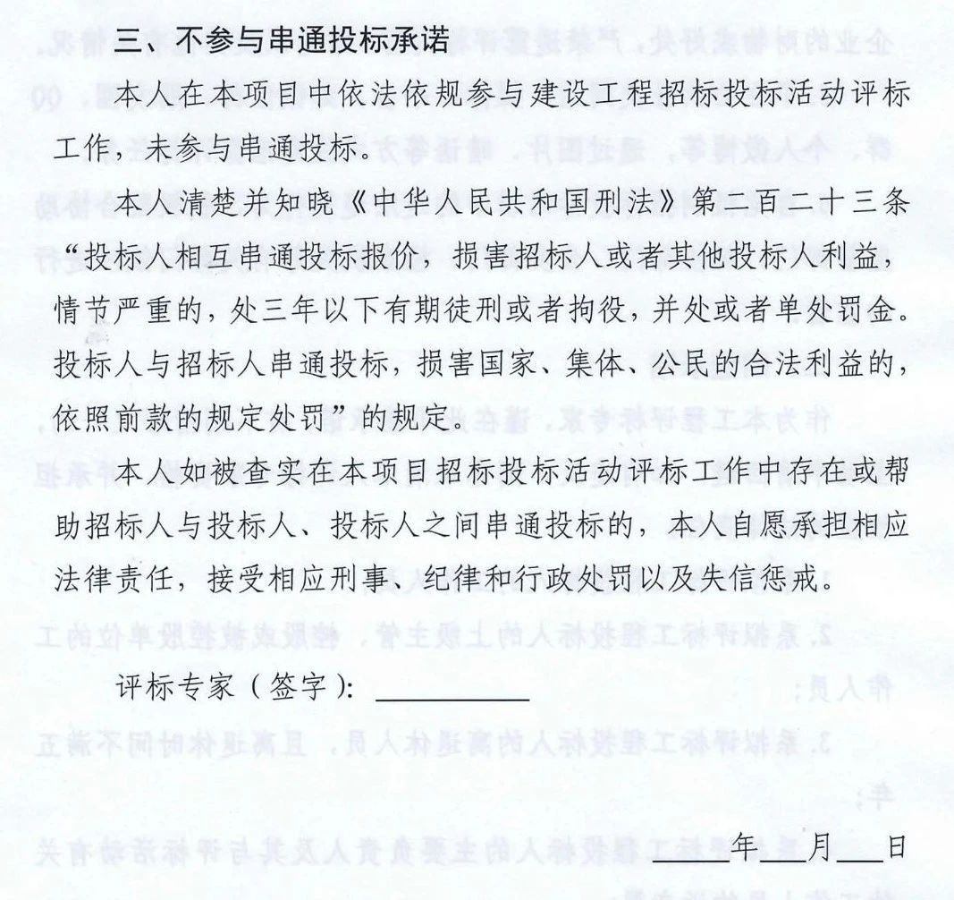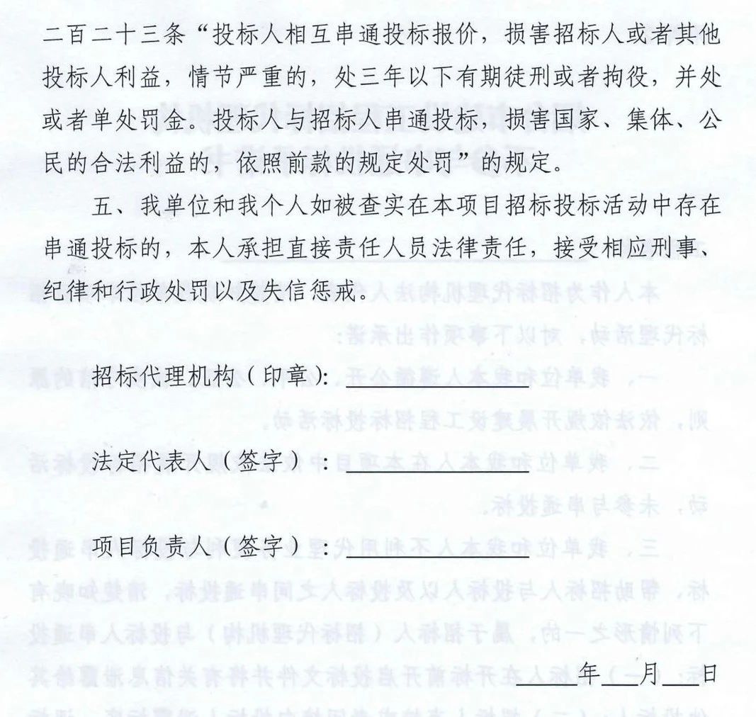 2019年6月15日起,投标人在递交投标文件时,投标人代表须当场签署《不参与围标串标承诺书》。