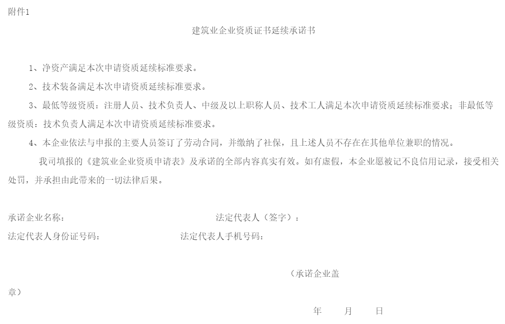 由我省负责许可的建筑业企业资质,其延续审批实行告知承诺制。企业应于资质证书有效期届满3个月前,登录江苏省建筑业监管信息平台2.0,提出延续申请,对企业净资产、主要人员和技术装备等主要指标符合延续资质标准条件的情况作出承诺(建筑业企业资质证书延续承诺书见附件1),并对承诺内容真实性、合法性负责,承担全部法律责任。经资质许可机关核准,更换有效期为5年的资质证书,有效期自批准延续之日起计算。